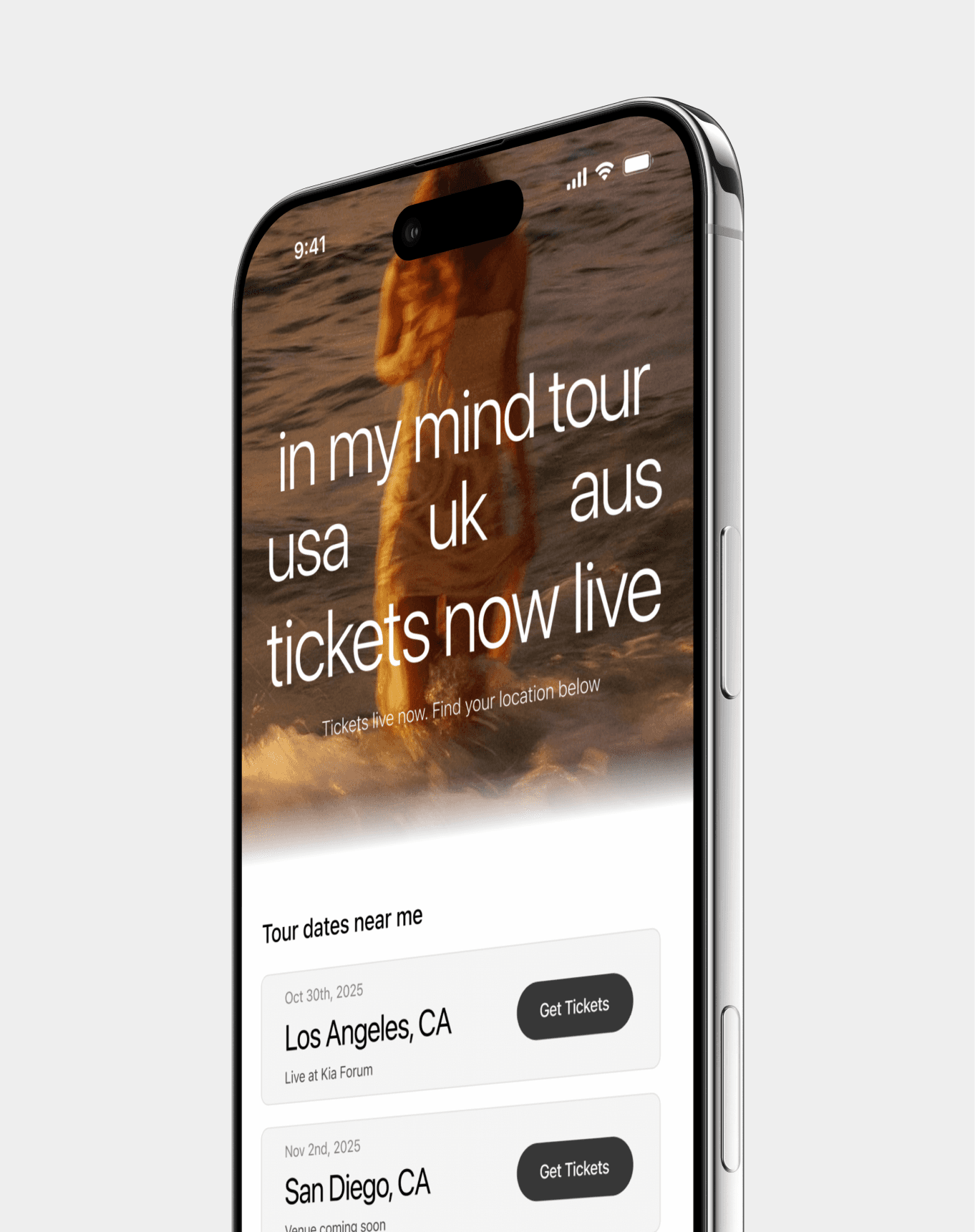 Whether its a local show or world tour, sell out faster with a page specifically designed for your tour.