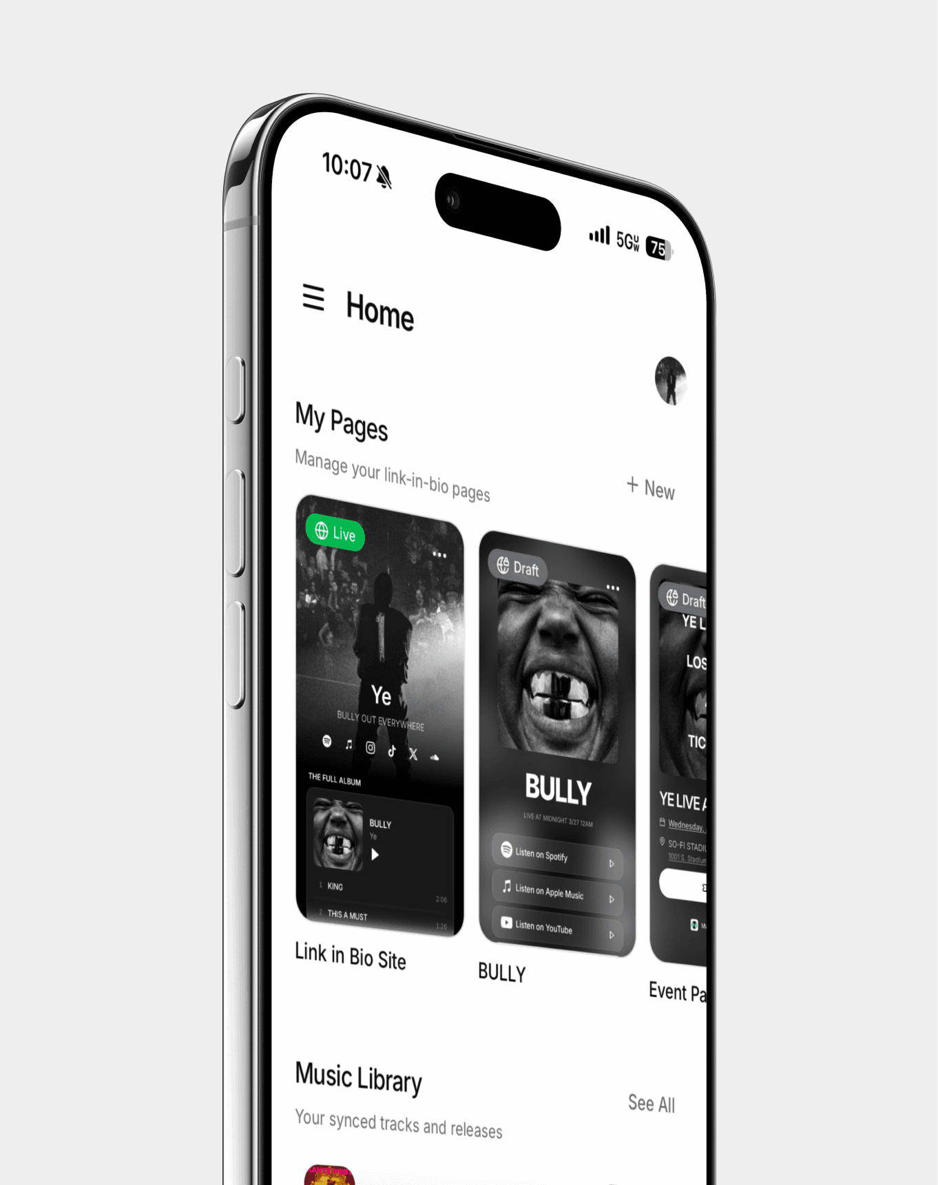 Build a free link in bio site or access unlimited design and marketing tools to promote your music.