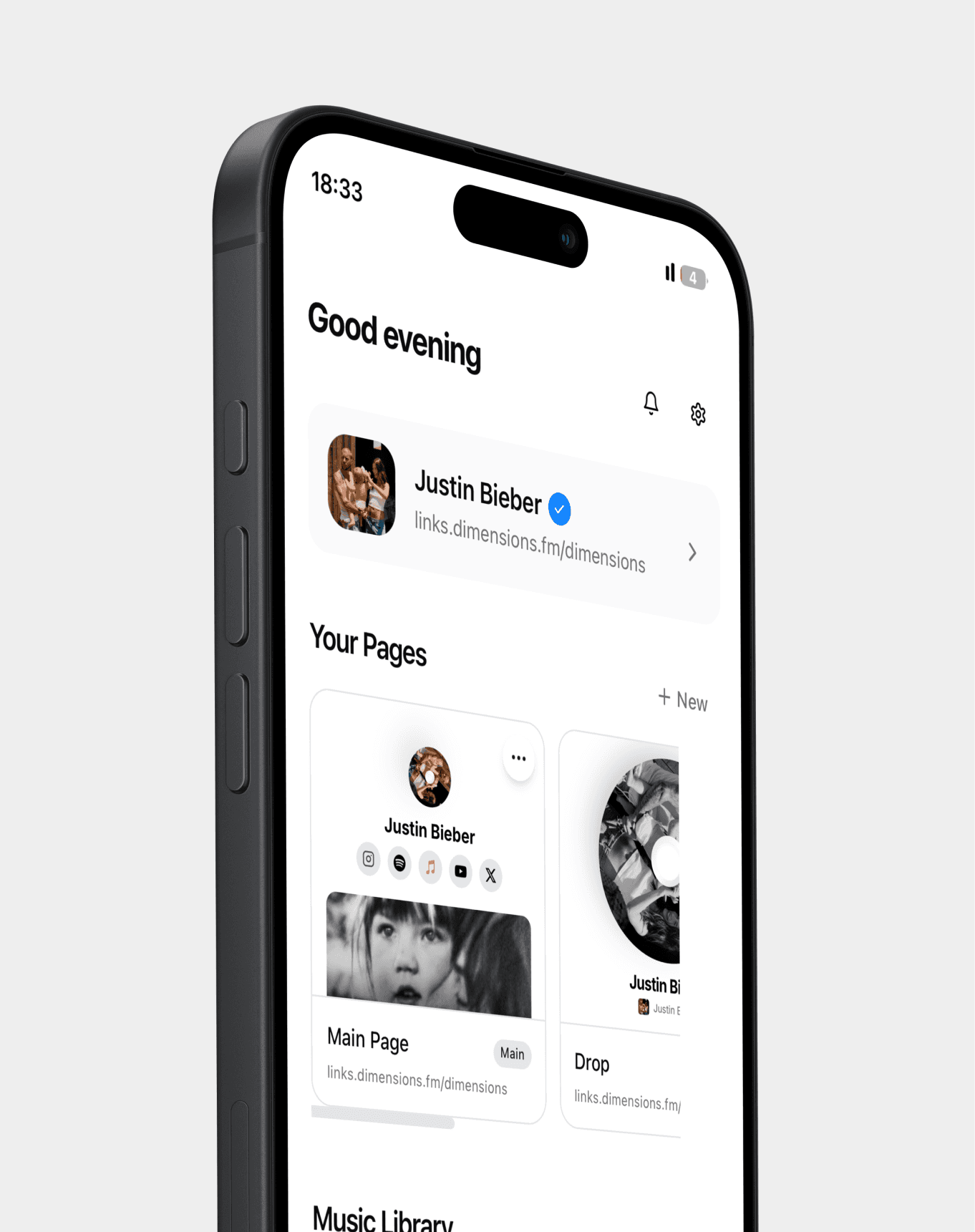 No more make-shifting other link in bio's to fit your needs. Dimensions is your new home to share, store and grow your music.