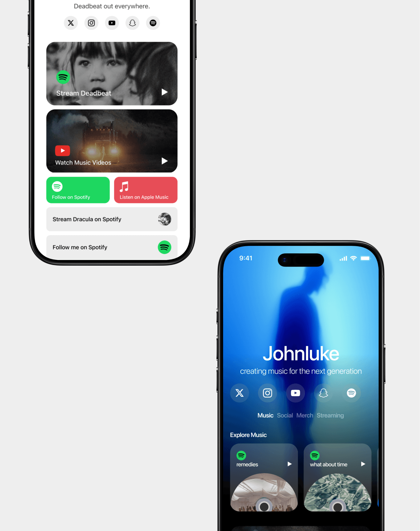 No more having to make-shift other link in bio sites to fit your needs. Welcome to your new home to share, store and grow your music.