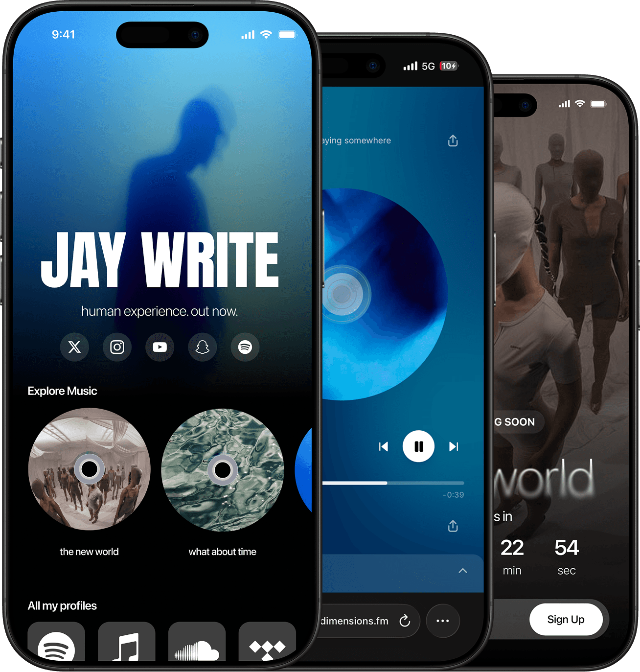 Promote songs, social links and more on your Dimensions site.